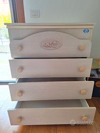 Fasciatoio Pali, senza cuscino superiore, 4 cassetti + vaschetta per bagnetto.