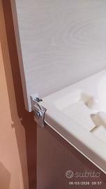Con vaschetta incorporata removibile per il bagnetto in comodità,apertura di sicurezza con sblocco pulsante a lato con ruote che si possono bloccare .vendo .già montato .da ritirare