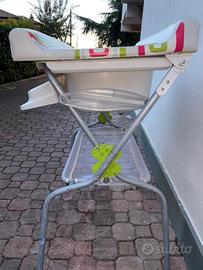 Vendo fasciatoio per bambini con vaschetta per il bagnetto incorporata, portaoggetti e porta asciugamani avanti e rete per appoggio oggetti nella parte inferiore, tenuto molto bene.