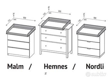 Polini bambini fasciatoio per comò Hemnes IKEA in bianco