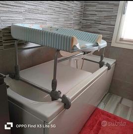 Bagno-time brevi : fasciatoio e vasca da bagno adattabile a destra e a sinistra in base ai rubinetti. Regolabile in altezza e adattabile alla maggior parte delle asche da bagno con