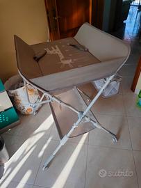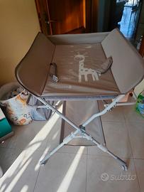Fasciatoio pieghevole, comodo, pratico, si apre e si chiude facilmente, trasportabile, con ruote bloccabili. Colore beige. Nuovo, mai utilizzato, ancora nella scatola originale. Misure chiuso: 103x80