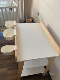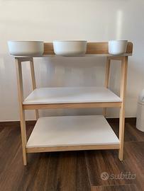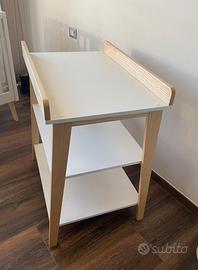 Fasciatoio in legno “Cuoricini” aperto ,con 3 ripiani e accessori. Dimensioni: H totale 90 cm, P 54 cm L 74. Ottime condizioni