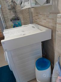 fasciatoio per lavatrice bianco in legno, profondo 70 cm , non è nella foto ma c'è un porta oggetti che si può aggiungere ma che non abbiamo mai usato, materassino non incluso