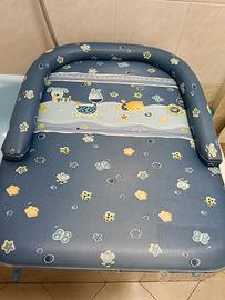 Fasciatoio + vaschetta per bagnetto marca "brevi" usato ma tenuto bene, si posa sopra la vasca da bagno. colore azzurro con disegnini.