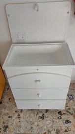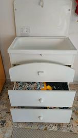 cassettiera con vaschetta e fasciatoio Prenatal Foppapedretti misure larghezza 49 cm lunghezza 69 e altezza 89 cm, ritiro a mano a Roma,