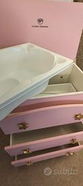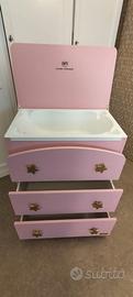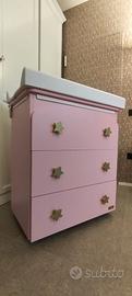 Vendo bellissimo fasciatoio rosa marca Chiara Ferragni con 3 cassetti, fasciatoio removibile (da sostituire!) e vaschetta incorporata per il bagnetto. Condizioni del mobiletto pari al nuovo. E' molto comodo per un bebè, ma in prospettiva potrebbe essere usato anche come versatile cassettiera per cameretta bimba ad esempio. Misure 78x46x88H. Non spedisco. Ritirabile in Bassano del Grappa