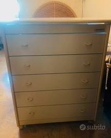 Fasciatoio/cassettiera Foppa Pedretti con 5 cassetti bianco molto resistente. Parte superiore anta a ribalta. Posizionabile facilmente grazie alle 4 ruote sotto. Solo ritiro a domicilio. Contattare per altre richieste