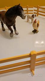 Vendo Fattoria - Stalla Schleich in legno, made in Germany come indicato sul lato inferiore, più la staccionata e 3 animali originali Schleich come da foto.