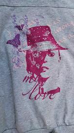Felpa a collo alto della Sarabanda per bambina di 7 anni. Grigia con disegno ritratto donna fucsia. Leggermente più lunga del solito adatta con un paio di leggings. Sconto del 20 per cento acquistando 5 prodotti.