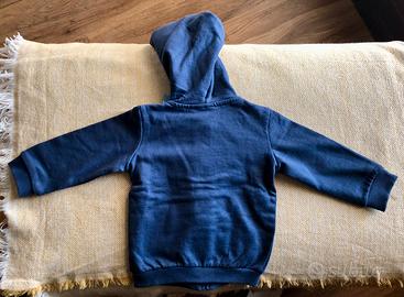 Felpa con cappuccio e zip, colore blu avio, con disegnato sul davanti il cucciolo Chase, uno dei personaggi della serie tv Paw Patrol. Felpa mai indossata con cartellino. Età 24 mesi.