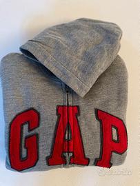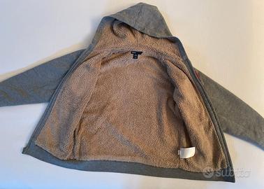 Felpa bambino GAP KIDS con cappuccio e cerniera e interno peloso, taglia 10/11 anni, colore grigio con scritta rossa, tasche laterali. Cerniera perfettamente funzionante, non ci sono strappi né tagli, né macchie. Come nuova usata poco. Esterno: 60% cotone, 40% polyester. Interno: 60% cotone 40% polyester, imbottitura 100% polyester.