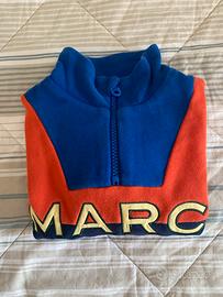Felpa bambino Marc Jacobs, collo alto con chiusura mezza zip, 3 colori (blu navy, arancione e blu), tessuto cotone 100% garzato, scritta logo frontale cucita a contrasto, tasca marsupio, taglia 2 anni(86cm), vestibilità regolare.