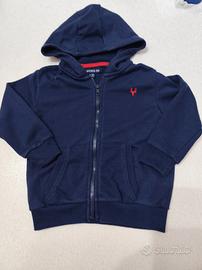 felpa con cappuccio per bambino in cotone, cerniera funzionante, blu, tasche laterali, misura 24-30 mesi, 98 cm, marca Emporio 88. altri articoli della stessa taglia, spedizione veloce.