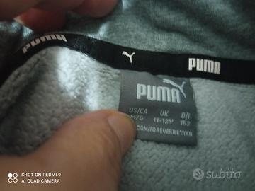 felpa bambino Puma con cappuccio e tasche colore grigio e nero e tipo maculato sulle spalle originale misura anni 11/12 come nuova