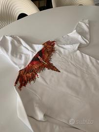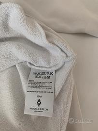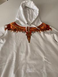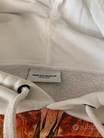 Felpa in cotone con cappuccio e tasche , bianca /arancione, con stampa su pannello frontale e pannello posteriore ,originale Marcelo Burlon , come nuova, con cartellino