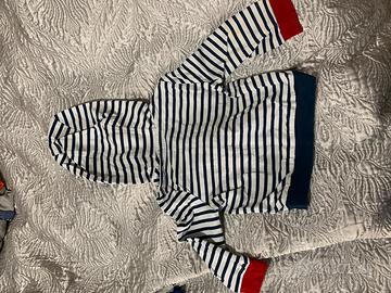 Felpa / giacchettino a righe con cerniera bimbo / bimba 6/9 mesi, marca “Original Marines”; con tasche e particolare rinforzo sui polsi in colorazione diversa.