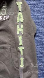 Felpa con cappuccio Scotch and Soda - 12 anni - colore verde con scritta TAHITI applicata sulla manica sinistra e scritta ALOHA nel bordo posteriore - come nuova