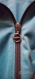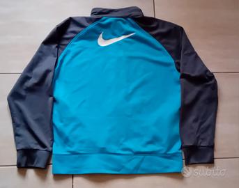 Felpa con zip Nike, 12 anni. Particolari: sul davanti simbolo Nike in tessuto; 2 tasche nascoste e altra etichettina vicino alla cerniera i fondo. Ottime condizioni.