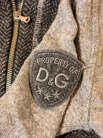 Felpa con cappuccio D&G Junior (Dolce & Gabbana) per bambino 18-24 mesi. Modello con chiusura a zip, tasche frontali e cappuccio.Design bicolore grigio con patch logo D&G sulla manica, stile sportivo e curato.