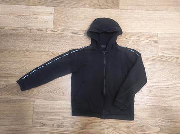 Felpa full zip con cappuccio. Il modello è personalizzato dal dettaglio del logo tape sulle maniche e dal logo sul fondo. Tasche laterali a filetto. Un capo versatile, adatto allo sport, il tempo libero e la scuola