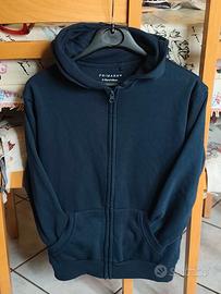 felpa felpata bambino tg 9/10 anni cm 140. con zip, cappuccio e due tasche laterali davanti. colore blu . indossata solo 2/3 volte