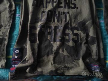 Maglia con cappuccio in 100% cotone, stampa "Whatever happens" e fondo camouflage, ottime condizioni. 12/13 anni