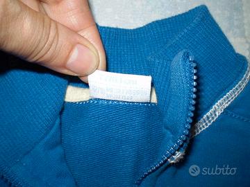 Felpa leggera marca Prenatal per 12-18 mesi (h 77-83 cm) con collo alto che si chiude con una cerniera lampo per proteggere la gola dai colpi di freddo, colore blu con impunture a contrasto, 1 scritta e 1 tasca a marsupio sul davanti. In perfette condizioni, come nuovo. Disponibili, per inutilizzo, altri pullover, felpe, jeans, bermuda, alcune paia di scarpe, t-shirt di cotone a maniche lunghe e corte, giubbini leggeri e pesanti, smanicati, montgomery, 2 abiti per comunione o damigella: 1 classico, l'altro più particolare, 1 coprispalle in filo color panna e rosa antico lavorato a mano all'uncinetto, nuovo, mai indossato; prodotti per l'infanzia e giochi
