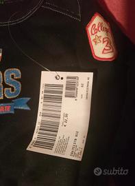 Felpa neonato in cotone 100% della United colors of Benetton, blu con scritta e applicazione sul braccio, bordi a costine grigi e rossi. Tg. 82 (12 - 18 mesi).
