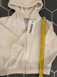 Bellissima felpina bimba con cappuccio Primigi, nuova taglia 9/12 mesi colore avorio, morbidissima in fibra naturale kapok, poliestere e elastan. Ottima come idea regalo. Vedere misure sulle foto