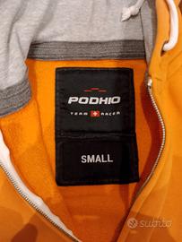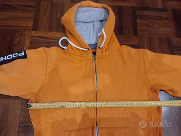 vendo felpa Podhio misura S in ottime condizioni con cerniera, cappuccio e tasche laterali di colore arancione