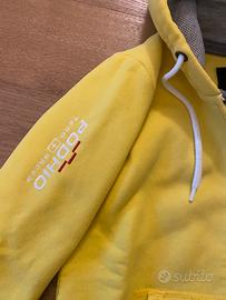Felpa Podhio taglia 13/14 color gialla con cappuccio interno grigio mélange, cerniera centrale , molto caldo. Ottime condizioni indossata solo 2 volte.