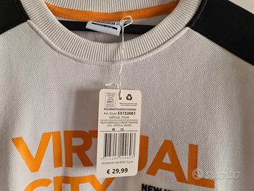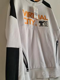 Felpa Primigi bianca con dettagli neri e stampa Virtual City. Nuova con cartellino - Taglia 10 anni / 140 cm. - Maniche lunghe. - Tasche con zip. - Girocollo.
