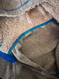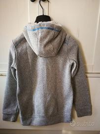 Felpa con cappuccio effetto sherpa/teddy, marca Quechua (Decathlon). Non c'è più l'etichetta della taglia ma sembra un 7/8 anni. Lunghezza manica 50 cm, altezza dal collo 55 cm, larghezza torace 39 cm. Si vede che è stata usata ma ancora in ottime condizioni, tiene bello caldo, tasche frontali, zip funzionante.