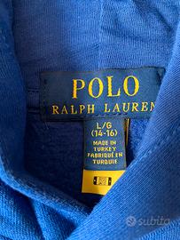 Felpa Ralph Lauren originale con cappuccio e tasca anteriore. Misura L 14/16 anni, come da cartellino e misure standard RalphLauren verificabili sul sito.