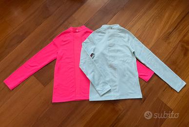 Felpa blu con cerniera centrale e collo rialzato; tessuto interno felpato. Tg 10 anni (h 133/142 cm) 2 maglie termiche fucsia fluo e azzurro chiaro. Interno tessuto felpato. Collo lupetto. Tg 10 anni (h 133/142 cm)