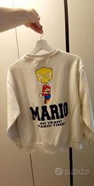 un modello solido con una scritta sul davanti e un tema di un cartone animato dietro Super Mario. chiusura a pullover e collo tondo.