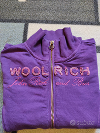 Bellissima felpa estiva Woolrich per bimba di 8A colore viola con scritte rosa fucsia e perline. Cerniera perfetta, tasche sul davanti. Ottime condizioni