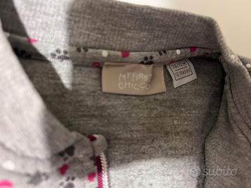Felpa per bambina con zip, tema pois, impronte e cuoricini Marca: My First Chicco Taglia: 74 cm / 12 mesi Materiale: 85% cotone, 10% viscosa, 5% elastane