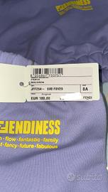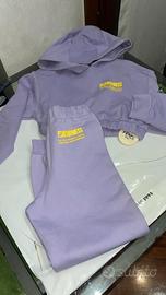 Completo 2 pezzi composto da felpa con cappuccio e pantalone con culisse di Fendi Kids in taglia 8 anni..color lilla con logo in giallo.
