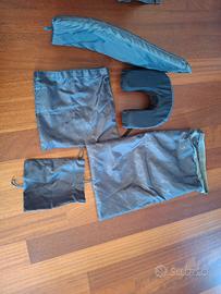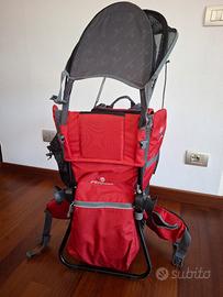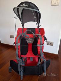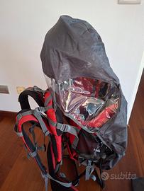 Zaino porta bambini marca Ferrino, modello Caribou compreso di accessori: 3 sacchetti impermeabili, cuscino poggiatesta e cuscinetto, parapioggia. Gli accessori in altri siti sono venduti separatamenti. Parapioggia utilissimo. Colore rosso. adatto dai 6 mesi in su. Usato ma come nuovo senza nessun difetto.