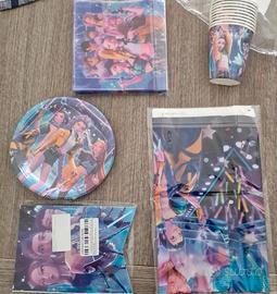 Vendo kit festa di compleanno tema huntrix 10 bicchieri, 20 tovaglioli, 10 piatti, 1 tovaglia, 1 striscione happy birthday nuovo.