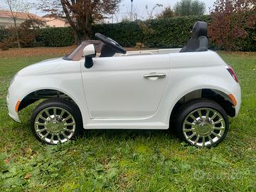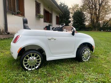 Fiat 500 elettrica per bambini, colore bianco, sportelli apribili, specchietti, marcia e retromarcia, sedile in plastica, Mp3, cinture di sicurezza, dimensioni: 113 x 67,5 x 53 cm, Fari a Led, suoni, capacita massima 25 Kg, ruote in plastica. Acquistata nuova ed utilizzata pochisime volte. Ritiro in loco.
