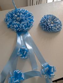 Vendo coppia di fiocchi azzurri per bambino, di cui uno più grande adatto all' esterno, ed uno più piccolo per la stanza dell'ospedale e poi la porta di casa. Solo consegna a mano per ovvii motivi.