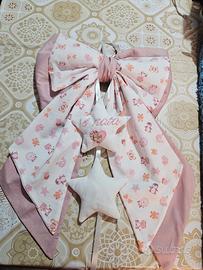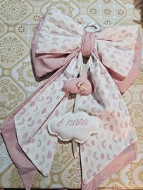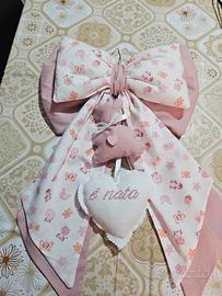 realizzo fiocchi nascita fatti a mano, con ricamo nome del bambino a punto croce 👶👶 20€ cadauno colori celesti o rosa