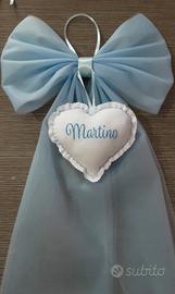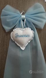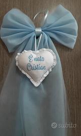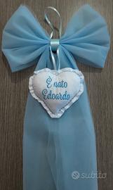💙 Fiocco nascita in tulle azzurro con cuore ricamato