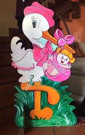 Fiocco nascita cicogna in legno