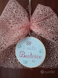 fiocco nascita 40×30 cm con ricamo, alfabeto e colori completamente personalizzabili