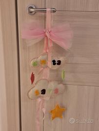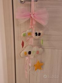 Fiocco nascita da bimba, realizzato a mano con pannolenci, tulle e raso. Il nome si mette quello desiderato.