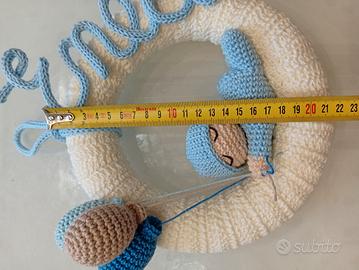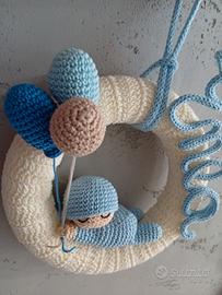 Fiocco nascita Enea, interamente lavorato all'uncinetto, in cotone 100%.Le misure della ghirlanda sono indicate in foto. È possibile realizzare progetti su richiesta 😀🙋, per info contattami